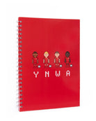 - دفتر ملاحظات أحمر بحجم A4 غلاف مقوى مع رسومات YNWA مطبوعة على الجهة الأمامية، وصفحات فضية لولبية ومبطنة مع طائر LFC Liverpool في الزاوية السفلية.