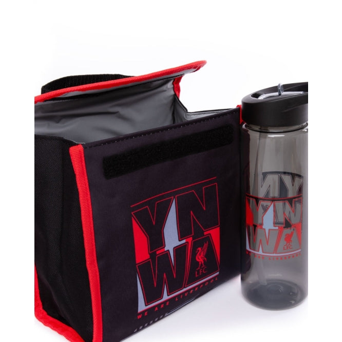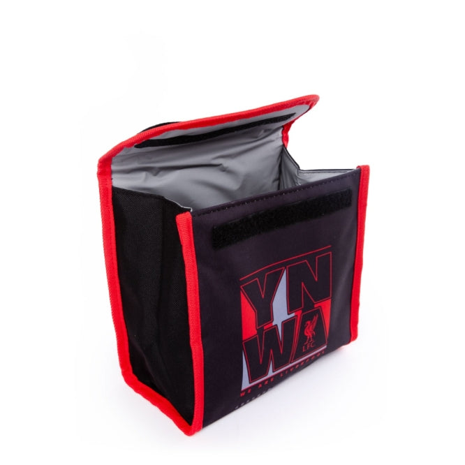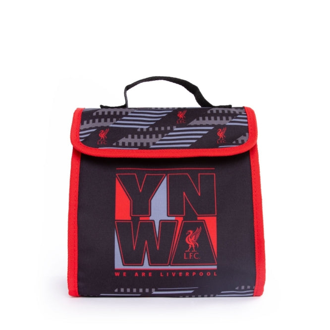 - حقيبة غداء باللون الأسود والرمادي والأحمر مع تفاصيل LFC.