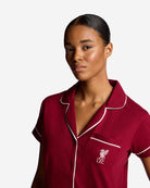 - Red short sleeve & shorts pyjama set for Women with Liverpool FC details.