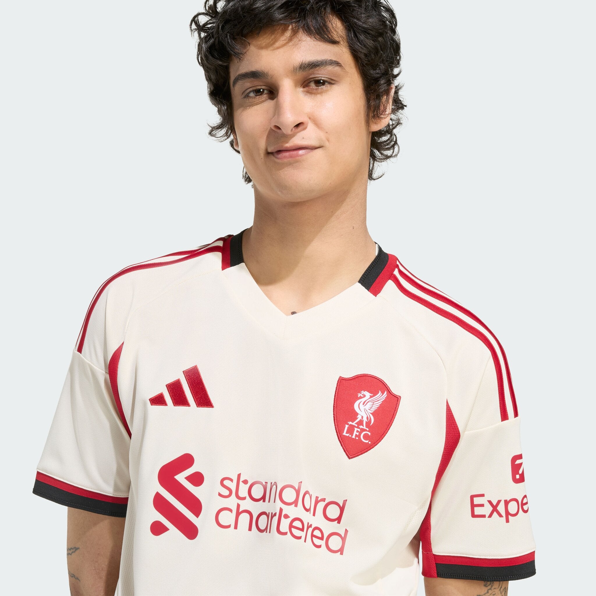 Created to represent Liverpool FC's iconic home ground on away days, this LFC adidas Mens 25/26 Away Jersey displays a specially made crest whose shape was inspired by the arched gable atop Anfield's old Main Stand. Moisture-managing AEROREADY and soft fabric combine to keep travelling fans comfortable. The off-white shade will be familiar to Reds who know their history.