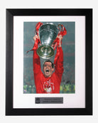 Hand-signed image of Jamie Carragher lifting the Europen Cup, Istanbul 2005.