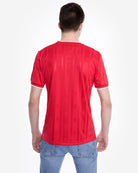 قميص أحمر طبق الأصل مع شعار قديم وتصميم مخطط