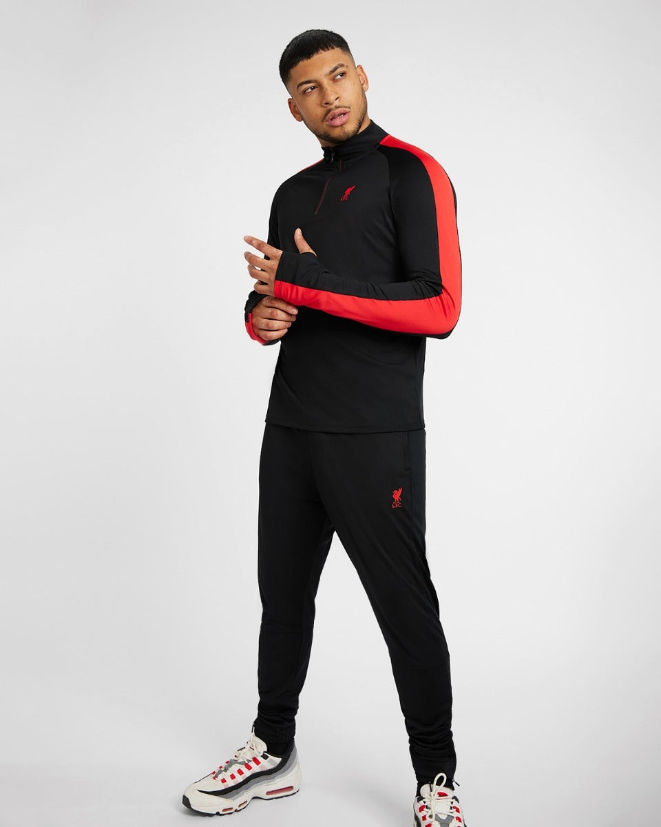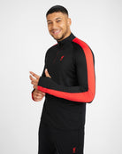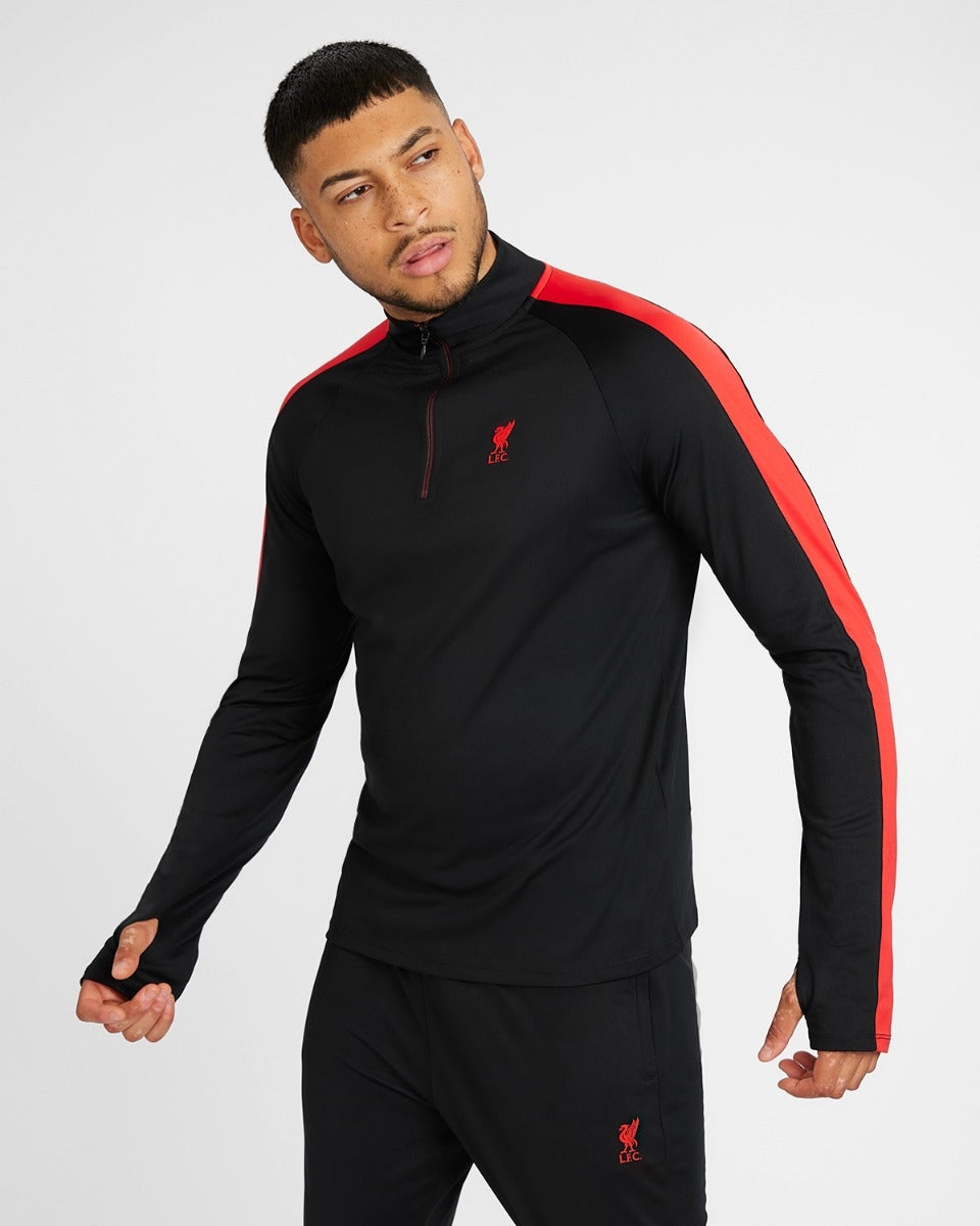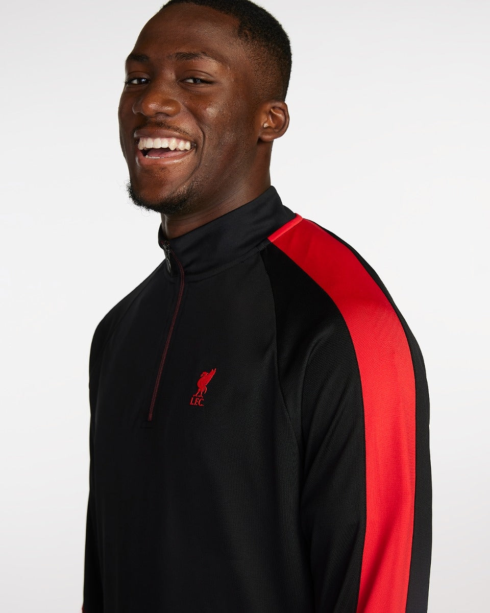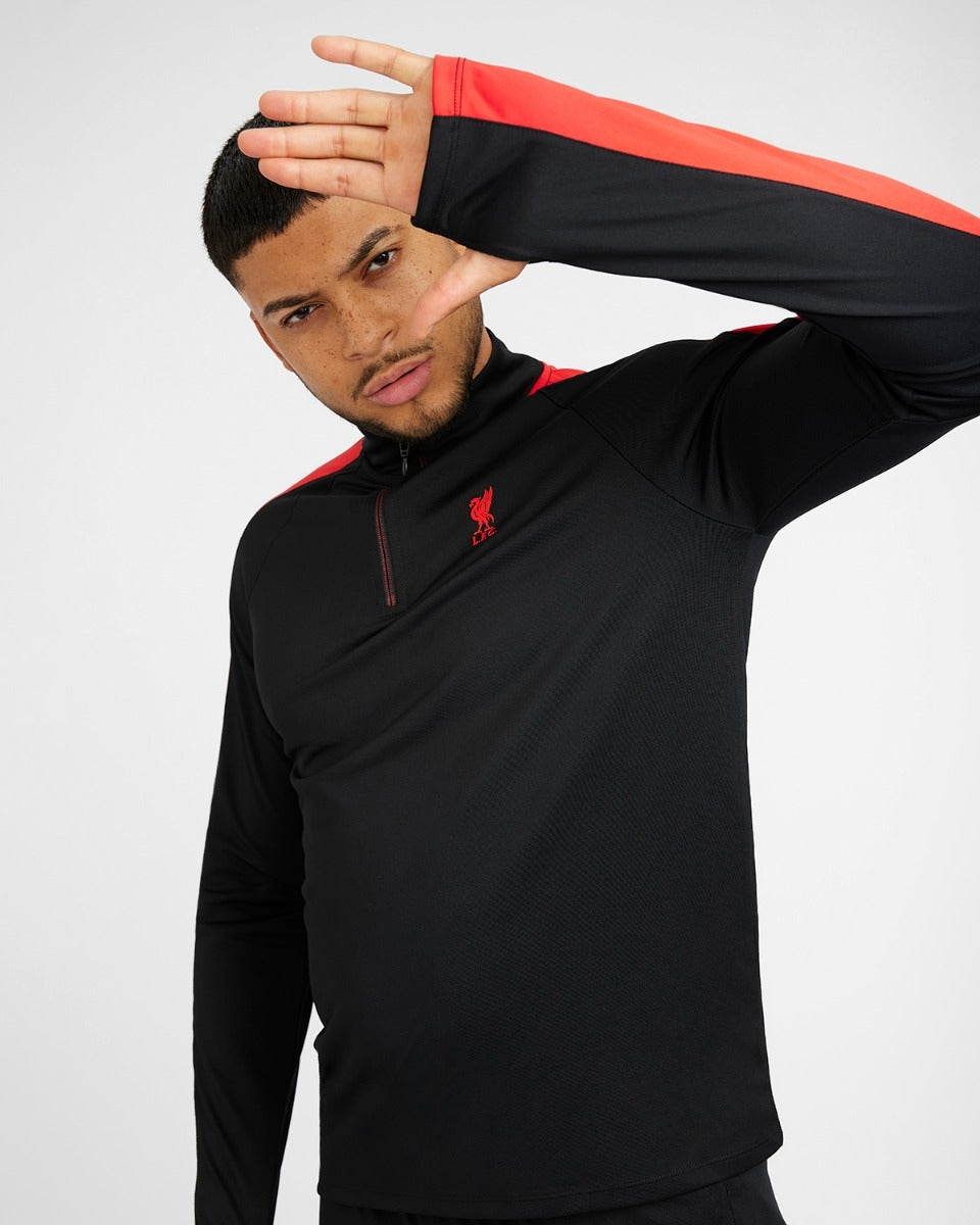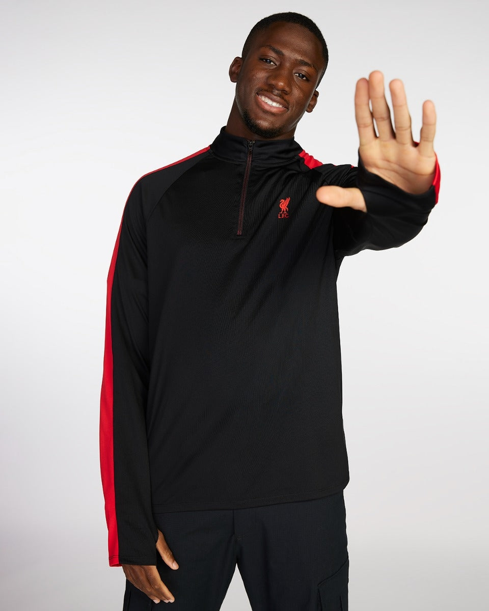 قميص بأكمام طويلة ورقبة على شكل قمع وسحاب ربعي وأكمام راجلان، وتفاصيل مقطوعة ومخيطة بألوان متباينة، وفتحات للإبهام عند الأكمام، ونسيج سيليكون عالي الجودة، وطبعة طائر الكبد LFC على الصدر الأيسر