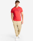 • تي شيرت رجالي أحمر بأكمام قصيرة مع تصميم مستوحى من عبارة "Walk On" مع صور أخرى لنادي ليفربول لكرة القدم في المقدمة.