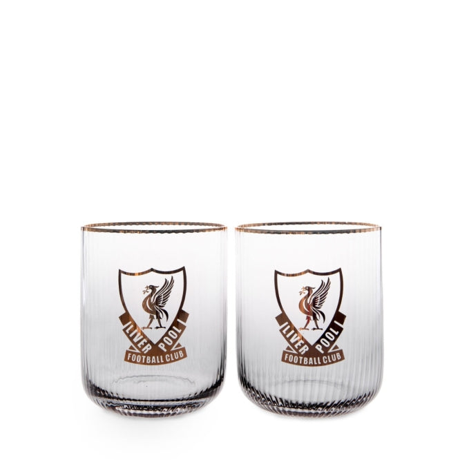 - زجاج مدخن مع لمسة نهائية مضلعة، مع تصميم شعار فريق ليفربول باللون الذهبي.