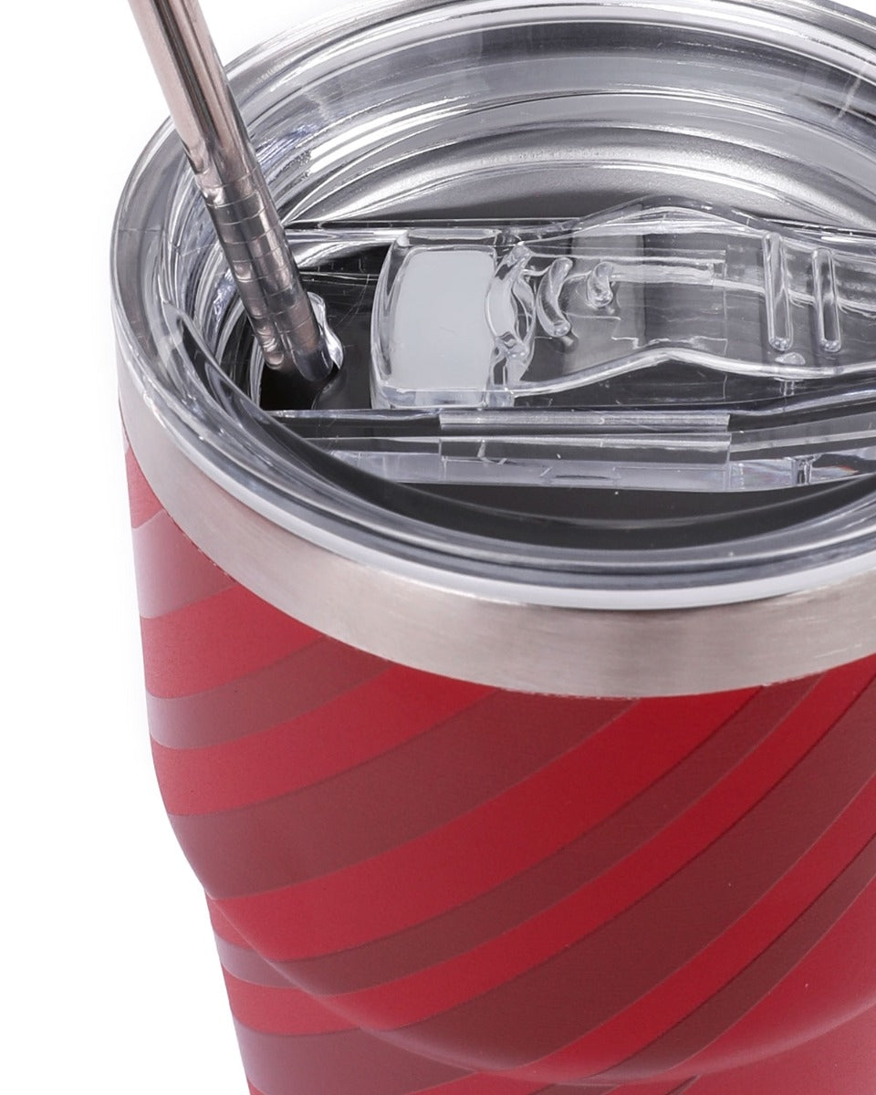 - Swooping Stripe design 450ml insulated travel mug with resuseable stainless steel straw.