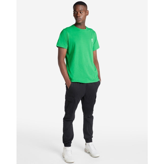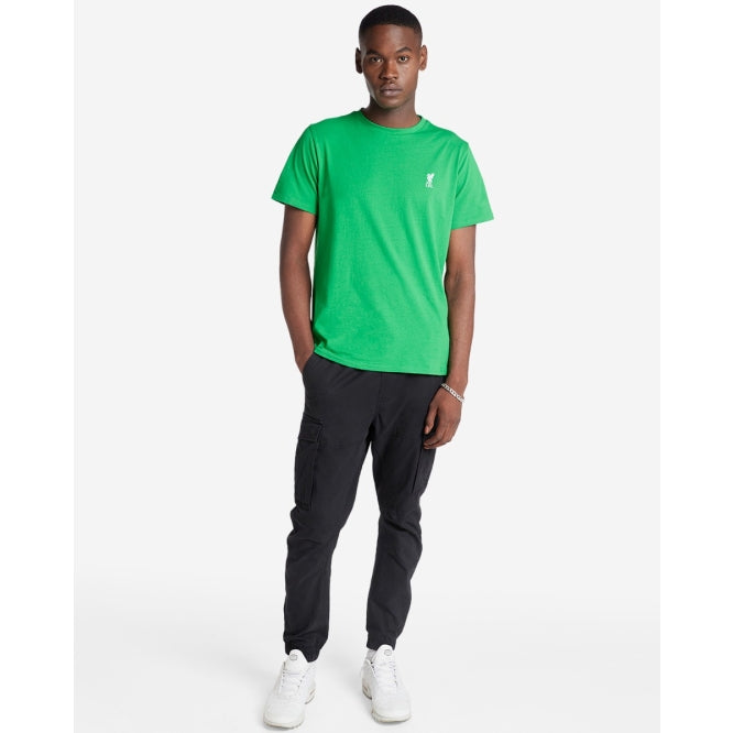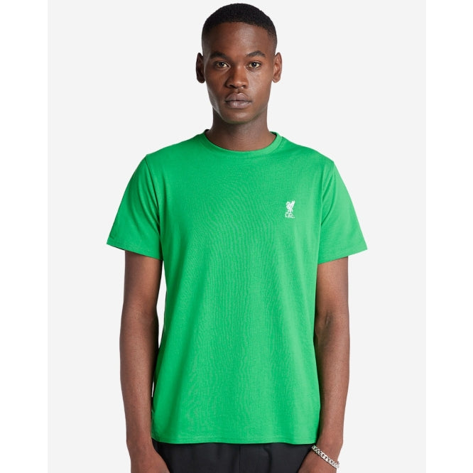 - تي شيرت أخضر بأكمام قصيرة ورقبة دائرية مع تطريز LFC Liverbird على الصدر الأيسر.