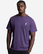 - تي شيرت أرجواني بأكمام قصيرة ورقبة دائرية مع تطريز LFC Liverbird على الصدر الأيسر.