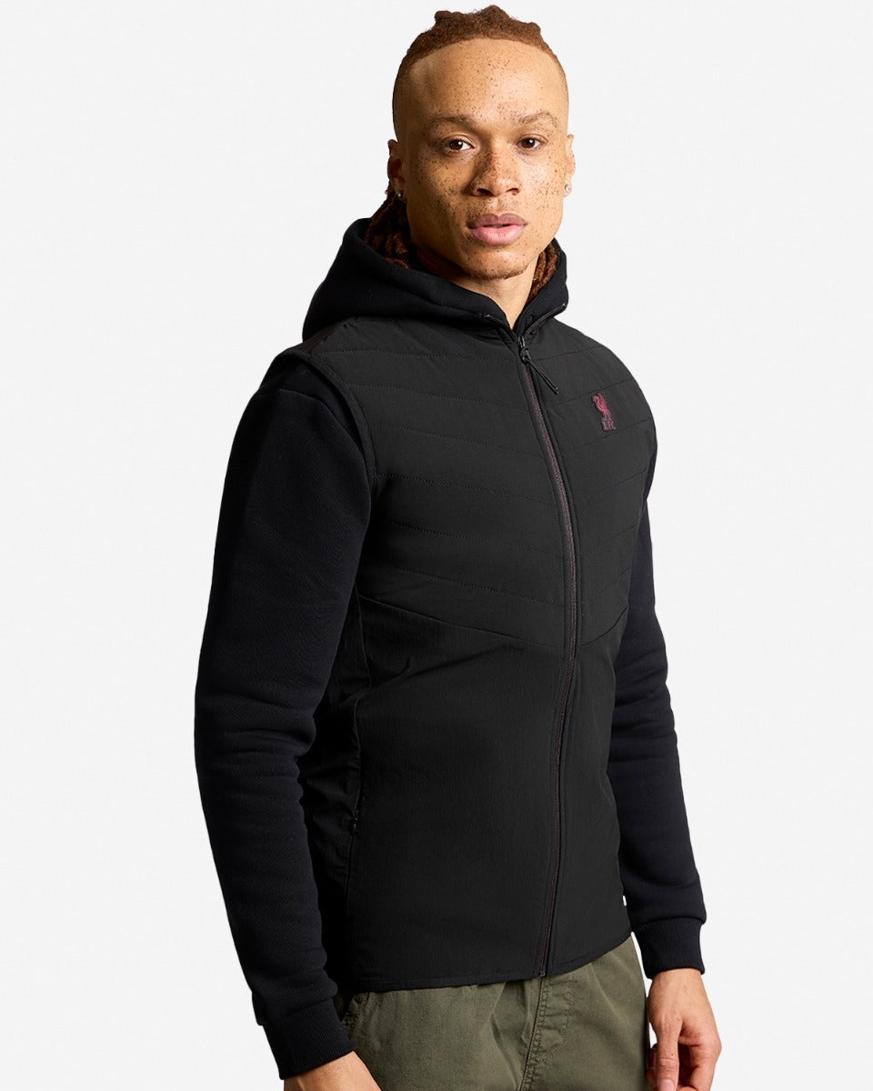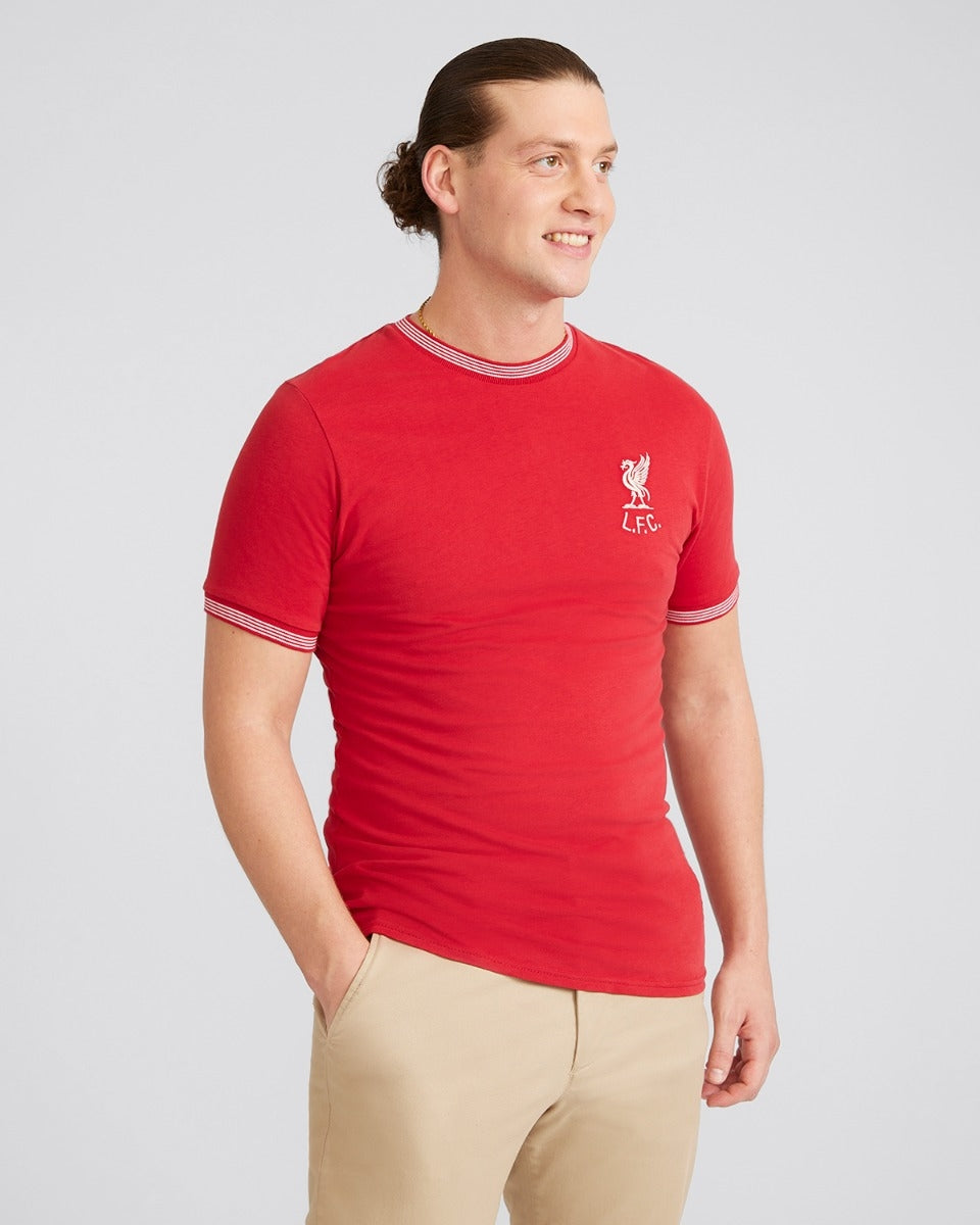 ارتدِ تحت سترة ليفربول قميصًا أحمر اللون يحمل شعار "أعظم فريق" للرجال، أو قميصًا أسود من YNWA، أو قميصًا أبيض/أخضر من طراز Retro 95/96، أو قميصًا أبيض/أحمر من طراز 1986. أكمل إطلالتك ببنطال رياضي من طراز LFC 1997.