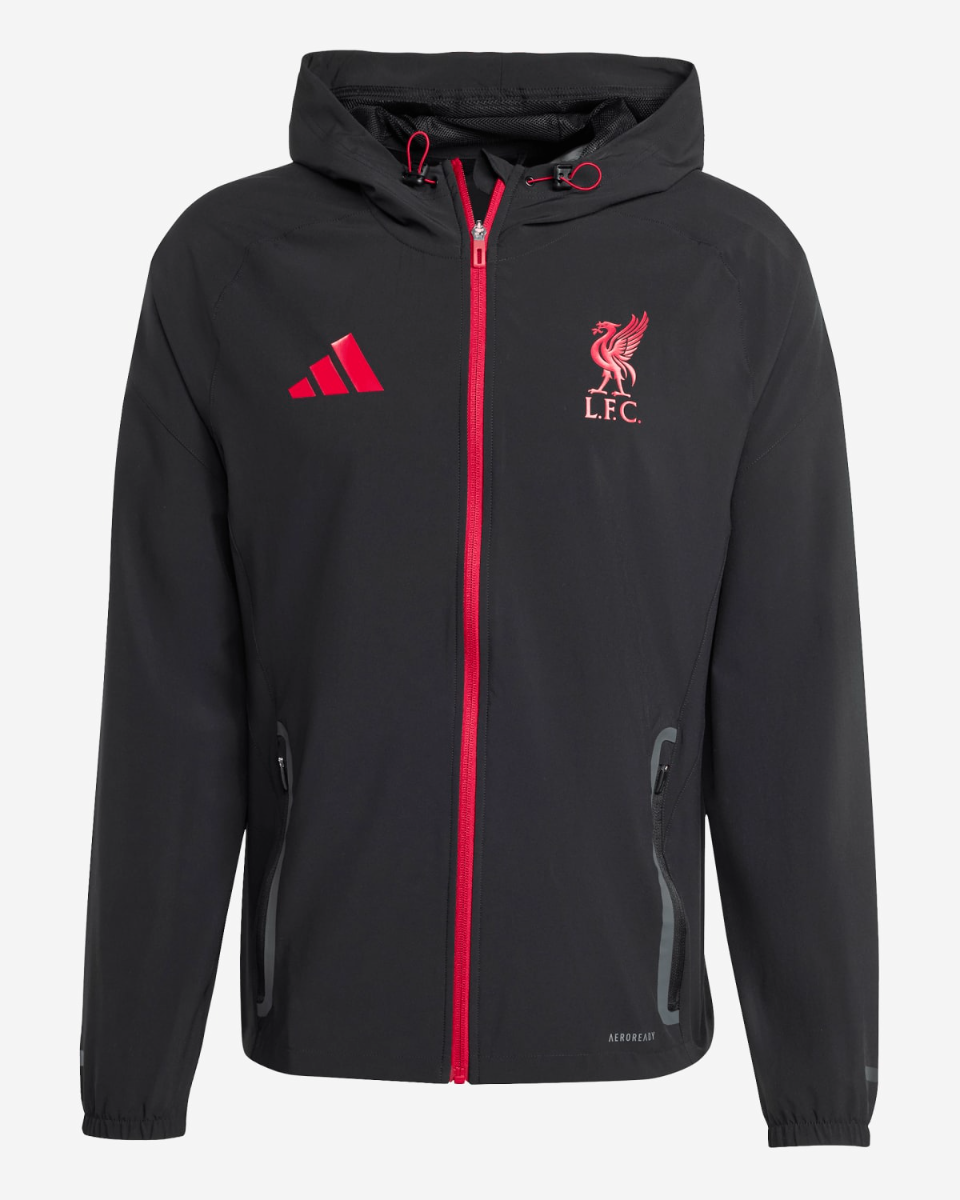 - Adults Liverpool FC Tiro 25 Competition Vis Tech Travel Jacket in Black & Strawberry Red.