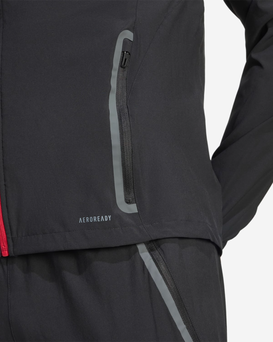 This LFC adidas Mens 25/26 Vis Tech Travel Jacket is cut for a slim fit from stretchy fabric that flexes with your every movement. Shining with pride in Liverpool FC mile after mile, that club crest is created using reflective print.
