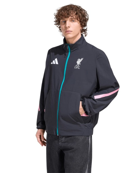 ارتدِ تحت سترة ليفربول قميصًا أحمر اللون يحمل شعار "أعظم فريق" للرجال، أو قميصًا أسود من YNWA، أو قميصًا أبيض/أخضر من طراز Retro 95/96، أو قميصًا أبيض/أحمر من طراز 1986. أكمل إطلالتك ببنطال رياضي من طراز LFC 1997.