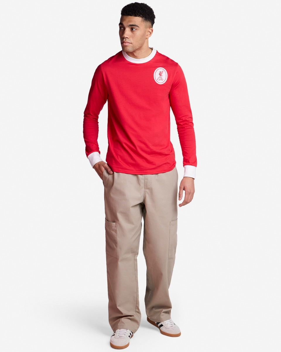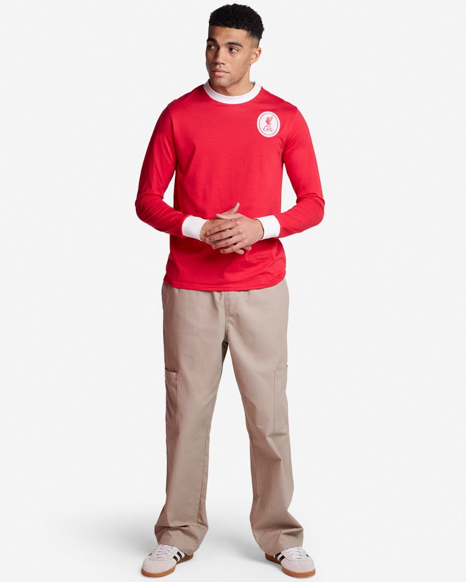 ارتدِ تحت سترة ليفربول قميصًا أحمر اللون يحمل شعار "أعظم فريق" للرجال، أو قميصًا أسود من YNWA، أو قميصًا أبيض/أخضر من طراز Retro 95/96، أو قميصًا أبيض/أحمر من طراز 1986. أكمل إطلالتك ببنطال رياضي من طراز LFC 1997.