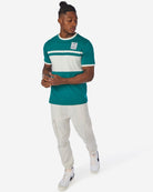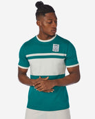 - تي شيرت مخطط بأكمام قصيرة ورقبة دائرية مستوحى من اللونين الأزرق المخضر والأبيض للزي الخارجي الذي ارتداه الفريق في مواسم 1993 إلى 1995.