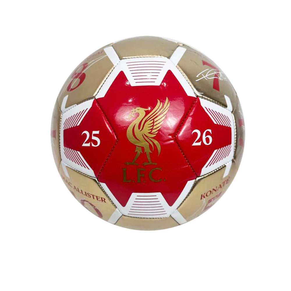 كرة LFC المميّزة للموسم 2025/26 بتصميم فاخر، تتميّز بتواقيع رقمية مطبوعة لأعضاء الفريق الأول إلى جانب شعار LFC الأيقوني.