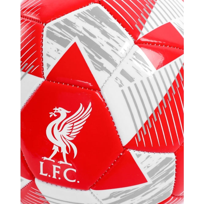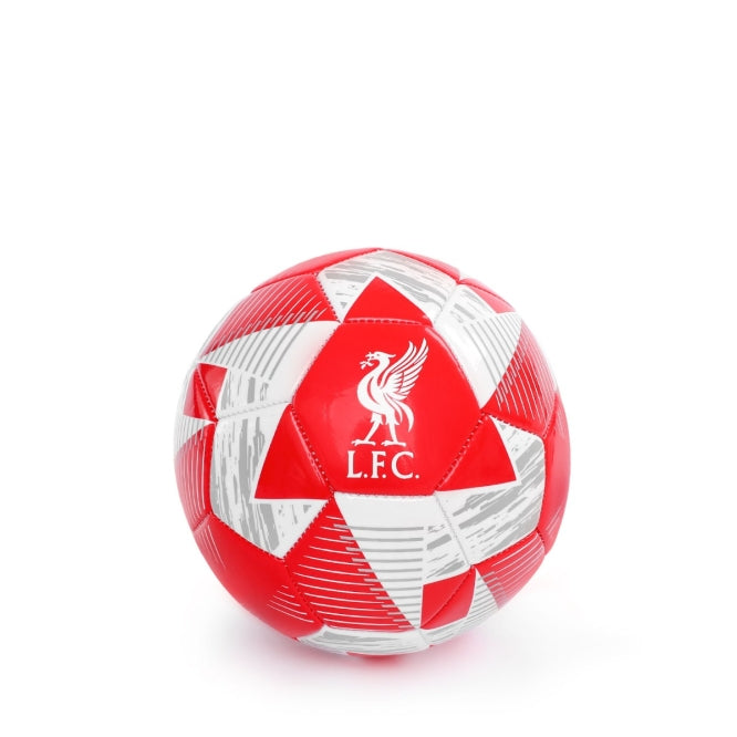 • كرة قدم ذات قاعدة حمراء مع حواف باللونين الأبيض والرمادي وعلامة LFC التجارية باللون الأبيض.