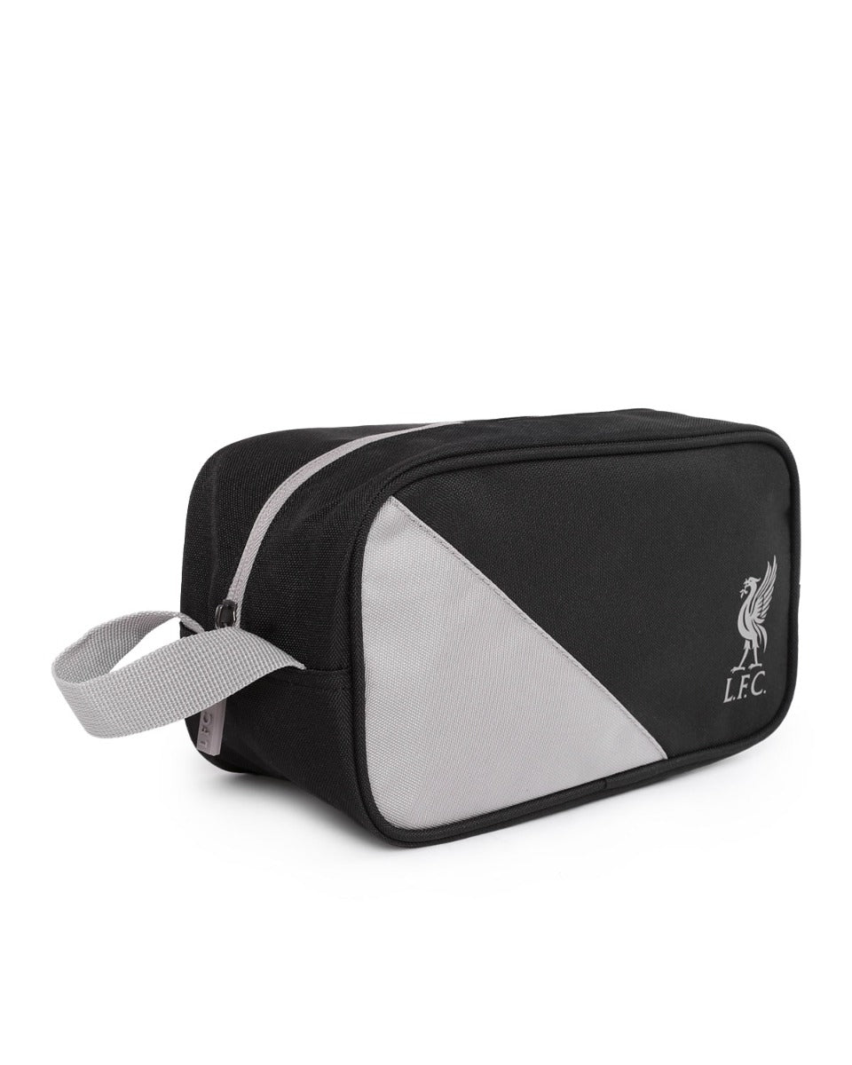 - حقيبة غسيل باللونين الأسود والرمادي تحمل شعار نادي ليفربول.