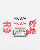 The LFC themed Stickers comes in a set of 5 A6 sized sheets and can be applied to any smooth surface. Ideal for Reds who want to decorate their possessions with a show of support while making them more recognisable and personalised.