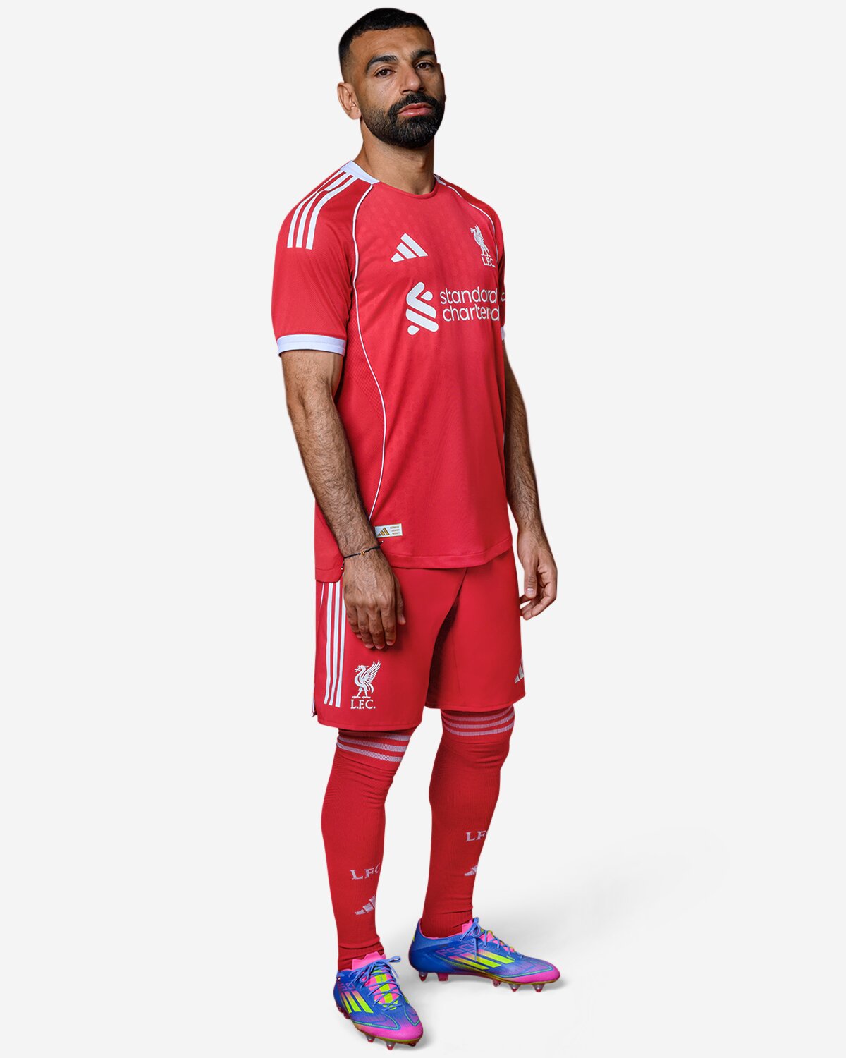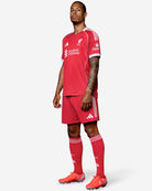 WELCOME HOME. LIVERPOOL RETURN TO THE 3 STRIPE FAMILY WITH A CLASSIC RED & WHITE HOME KIT. UNMISTAKABLY LIVERPOOL, UNMISTAKABLY ADIDAS.