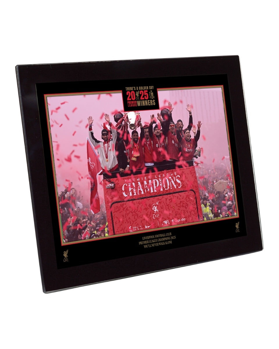 The LFC Parade 8 x 6 Glass Image is the perfect way for you or a loved one to remember the Reds 2024/25 Premier League Champions parade and add a unique decorative feature to a space at home or an LFC Themed Fan Cave.