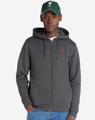 - Charcoal full zip through hooded sweat with embroidered Red LFC Liverbird to left chest.