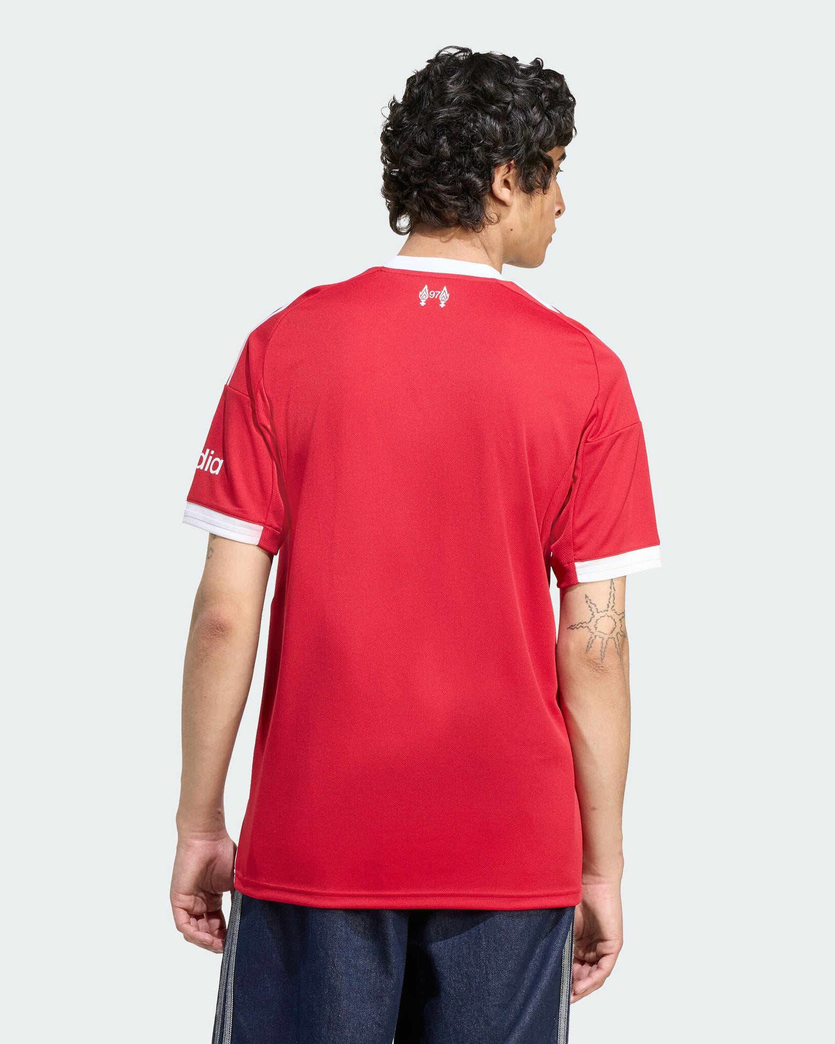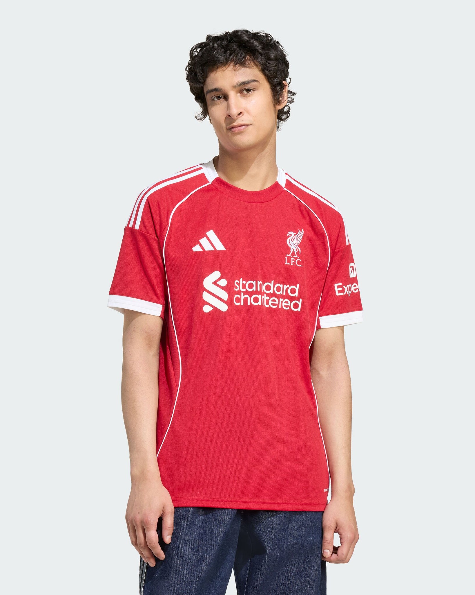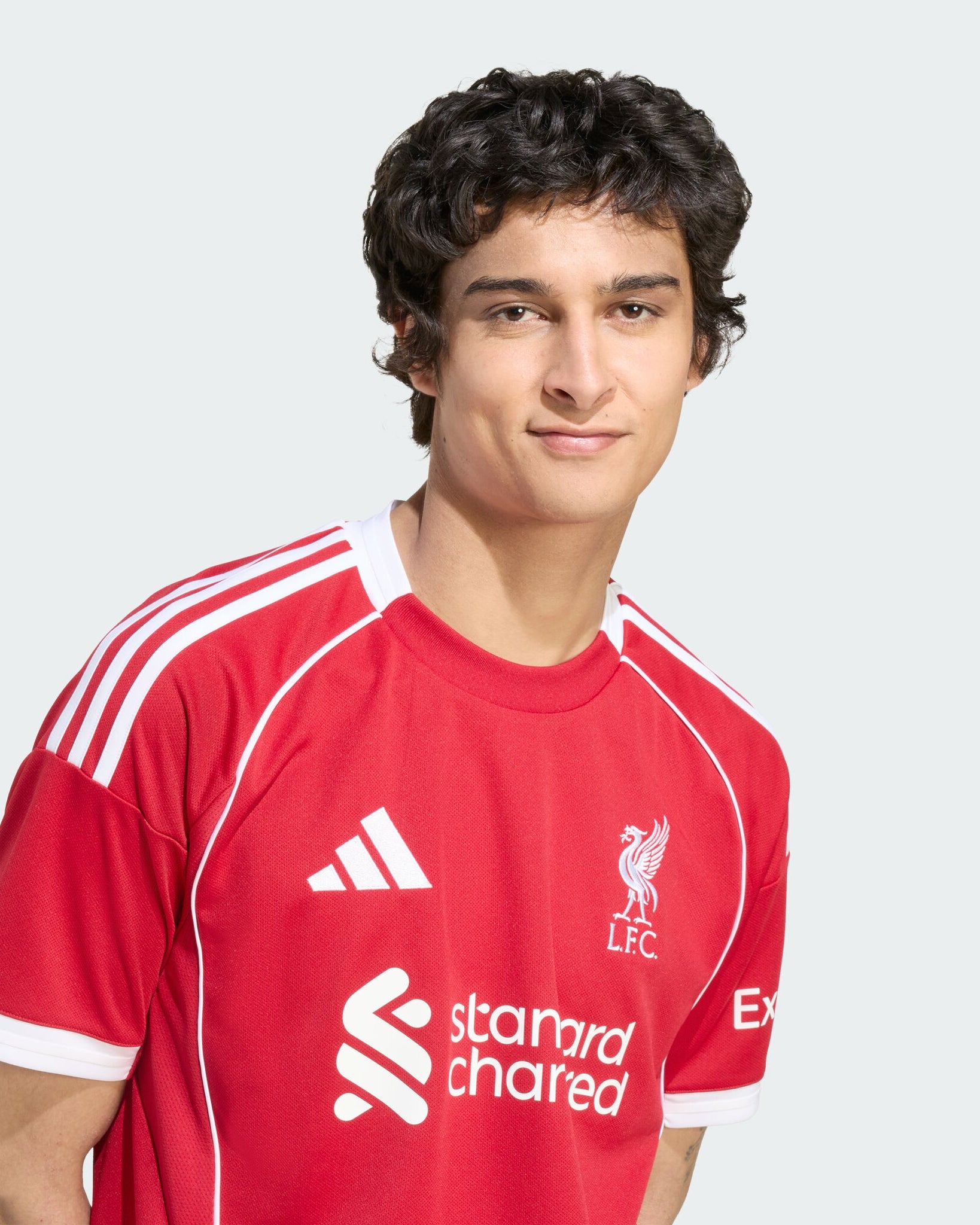 Get ready for the new season by ordering your Liverpool FC home jersey for 2025/26. After title glory in Arne Slot's first year in charge, the Reds seek to defend their crown sporting a new look. After 13 years, we've partnered again with adidas, and together we bring you an eye-catching LFC home kit, its quality matched only by those who wear it.