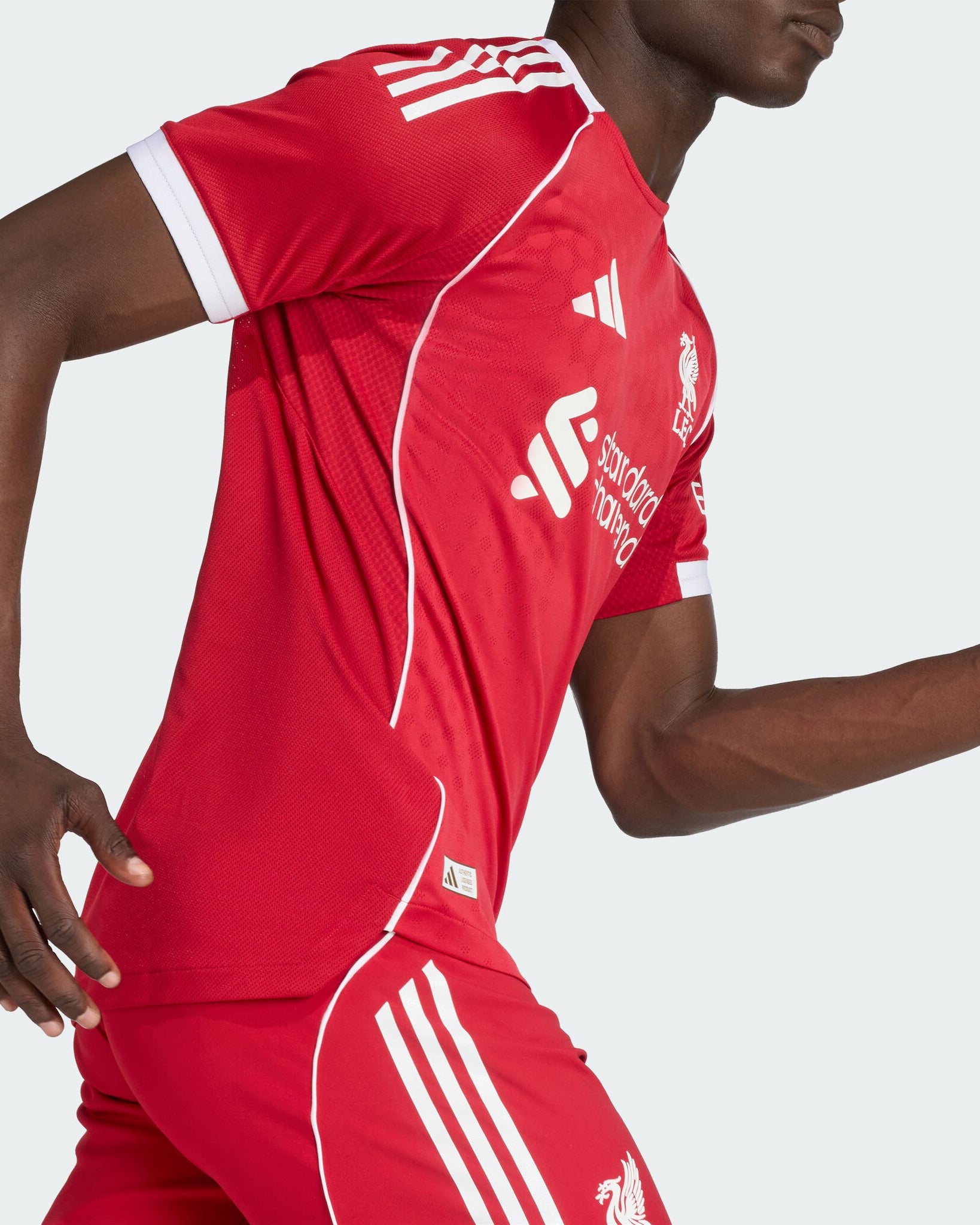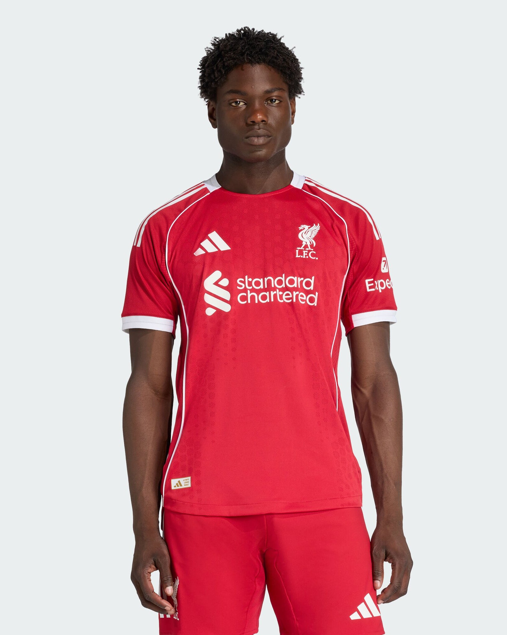 Our Pro LFC home kits for 2025/26 are identical to those worn by Mohamed Salah, Virgil van Dijk and the rest of the first-team squad. They've been informed by rigorous athlete testing, with advanced cooling and breathability zones to help you stay ice cold under pressure. They are also tailored to provide a slimmer fit and come with a higher price tag. Meanwhile, our Fan jerseys pair design details with sweat-wicking technology for a look inspired by the Pro kit. They tend to be more typically worn by supporters and offer a standard fit for comfort.