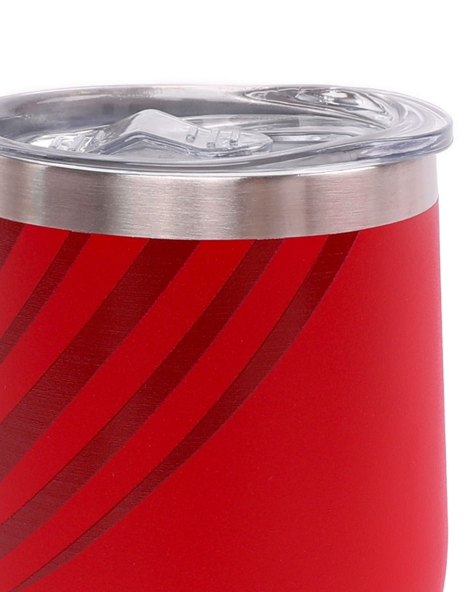 - Swooping Stripe design 350ml insulated stemless wine glass shaped travel mug.