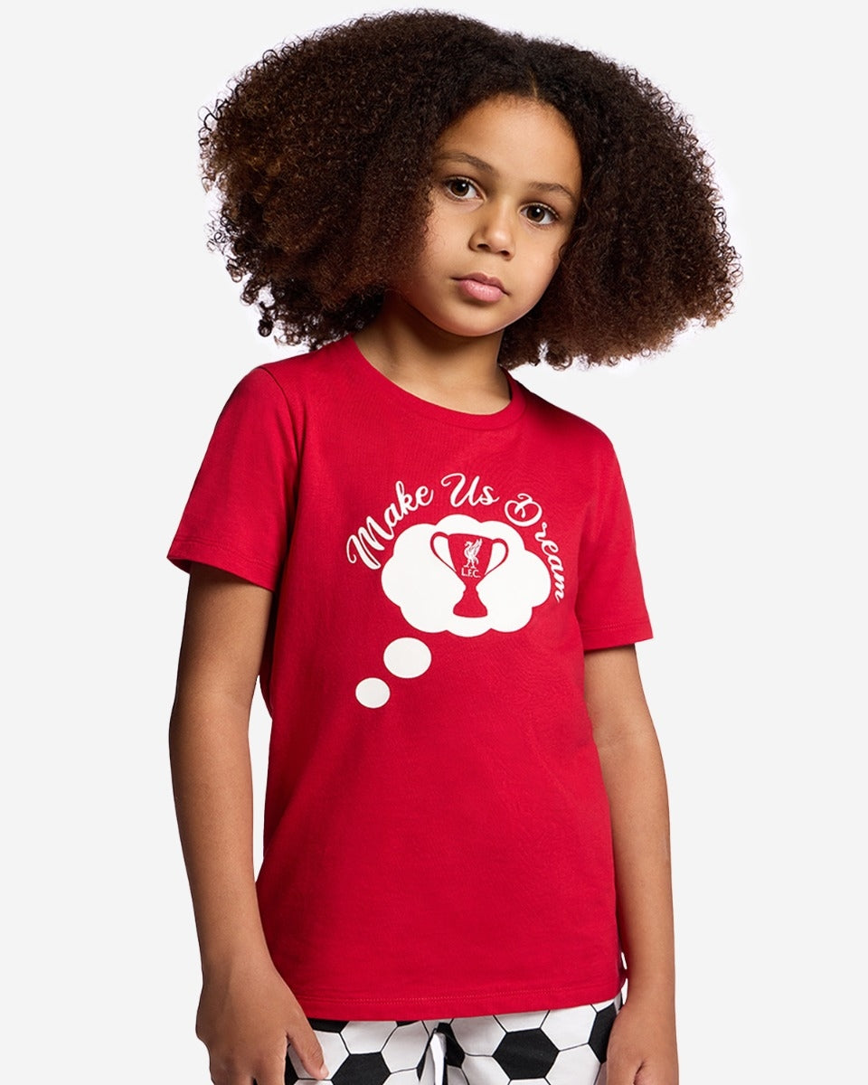 With our official, exclusive Liverpool FC kids' clothing collection, young fans can represent the club with pride in their own unique ways. It may be through a simple black T-shirt, a retro jersey, a pair of socks or even a pyjama set. Because any time is a good time to support the Reds!
