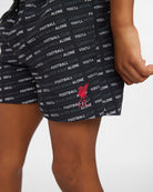 - Black shorts with White & Grey "LIVERPOOL FOOTBALL CLUB YOU'LL NEVER WALK ALONE" repeat print.