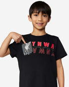 - Black short sleeve crew neck tee with LFC Liverbird in White, YNWA in Red and Liverpool Football Club in White.