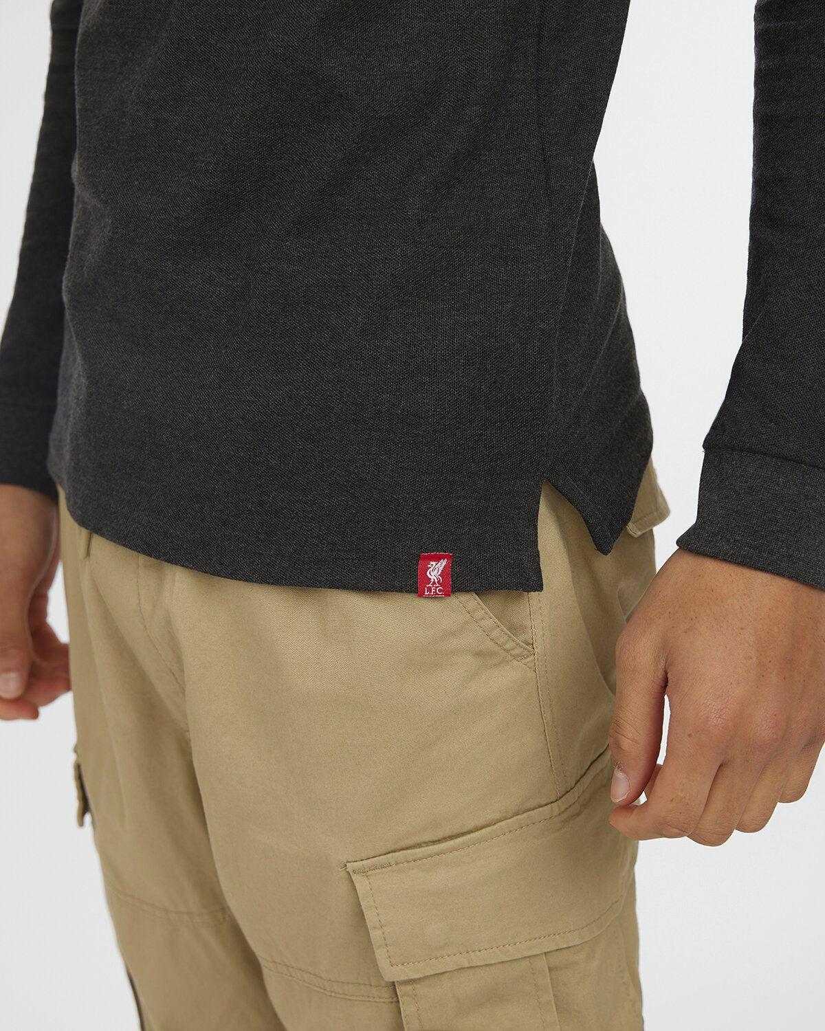 With a 90% cotton composition maximising comfort, this long sleeved tee also carries well on your physique while displaying acute class with the iconic Liverbird & LFC insignia located proudly on a front chest pocket presented in Liverpool Red, contrasting well with the light grey shirt.