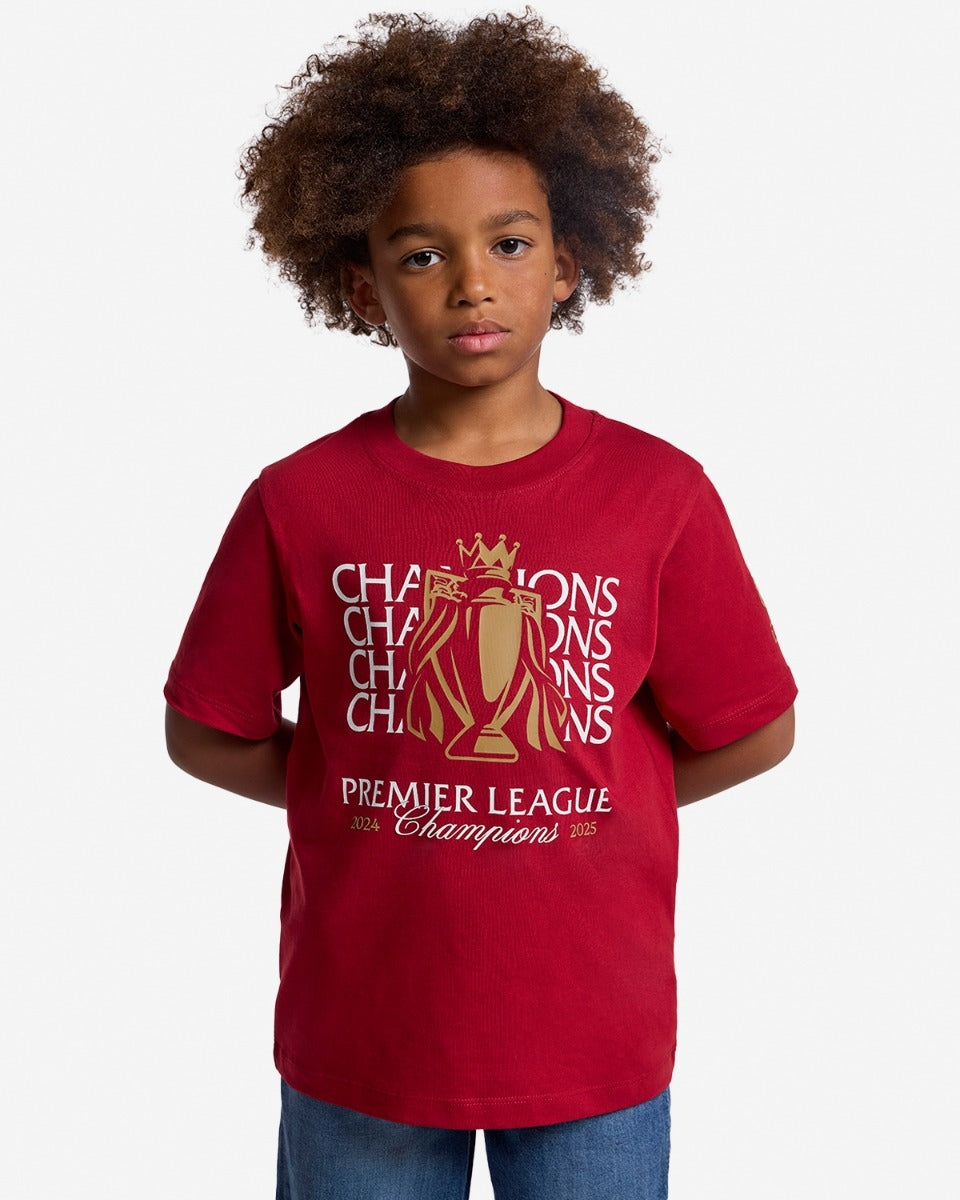 Celebrate Liverpool FC's record 20th League Title with the LFC Juniors Champions Trophy Tee Red, featuring a proud display that the Reds are Champions again on a fashionable addition to your little Reds wardrobe!