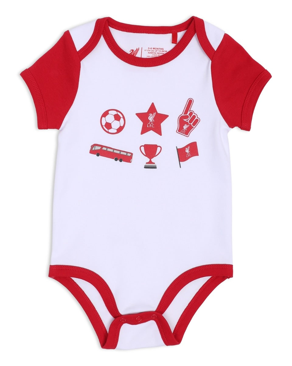 - Baby bodysuits 2 pack with Liverpool FC themed all over repeat graphic print designs.