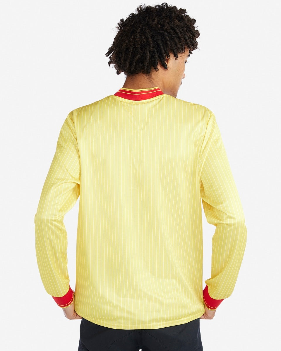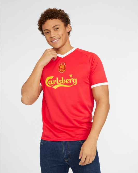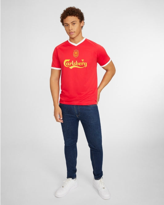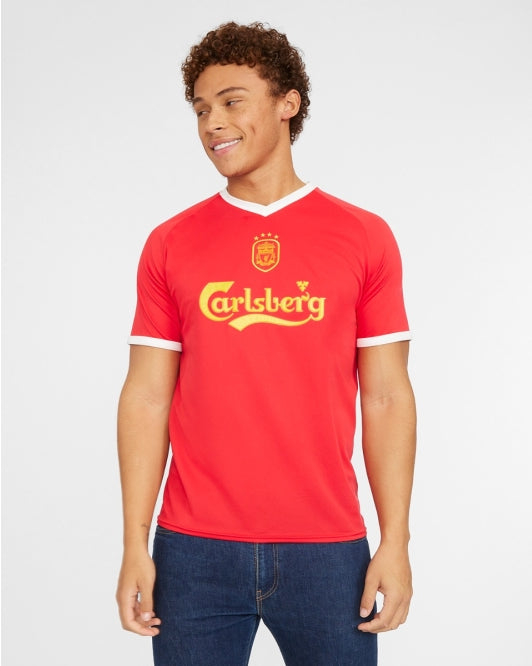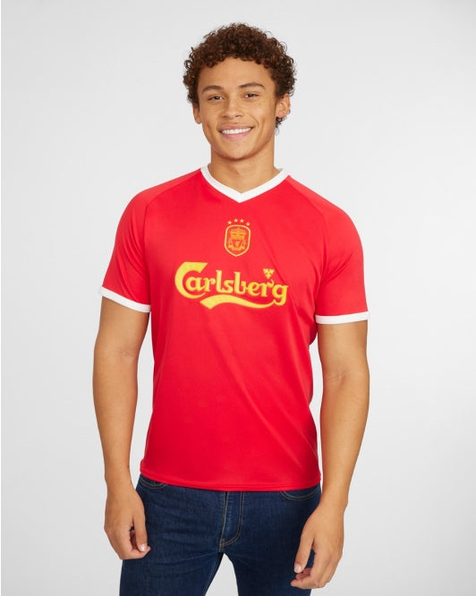 The 2000-01 season was one of the most famous in our illustrious history, as Gerard Houllier's side won a remarkable treble of League Cup, FA Cup and UEFA Cup. And what better way to commemorate such an achievement than with a retro LFC shirt? Choose either the classic home red or the away strip of yellow with navy panelling, worn by Michael Owen and co. for the dramatic late turnaround against Arsenal in Cardiff.